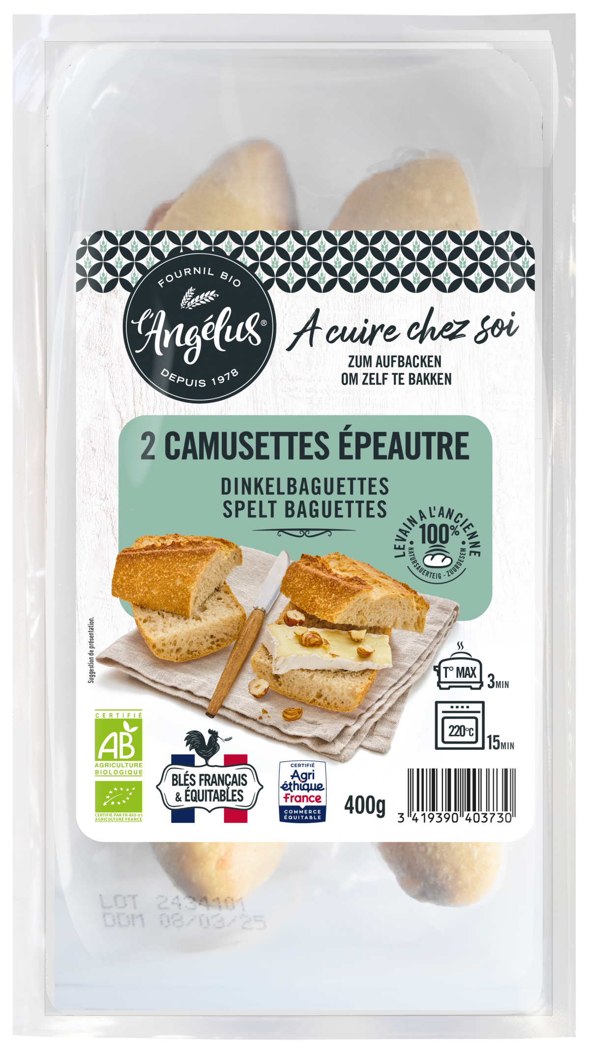 2 Dinke-Baguettes zum Aufbacken. Mit Natursauerteig, ohne Zusatz von Hefe. MHD 6 Monate ab Herstellungsdatum. 2x200g. 100% biologische Zutaten: