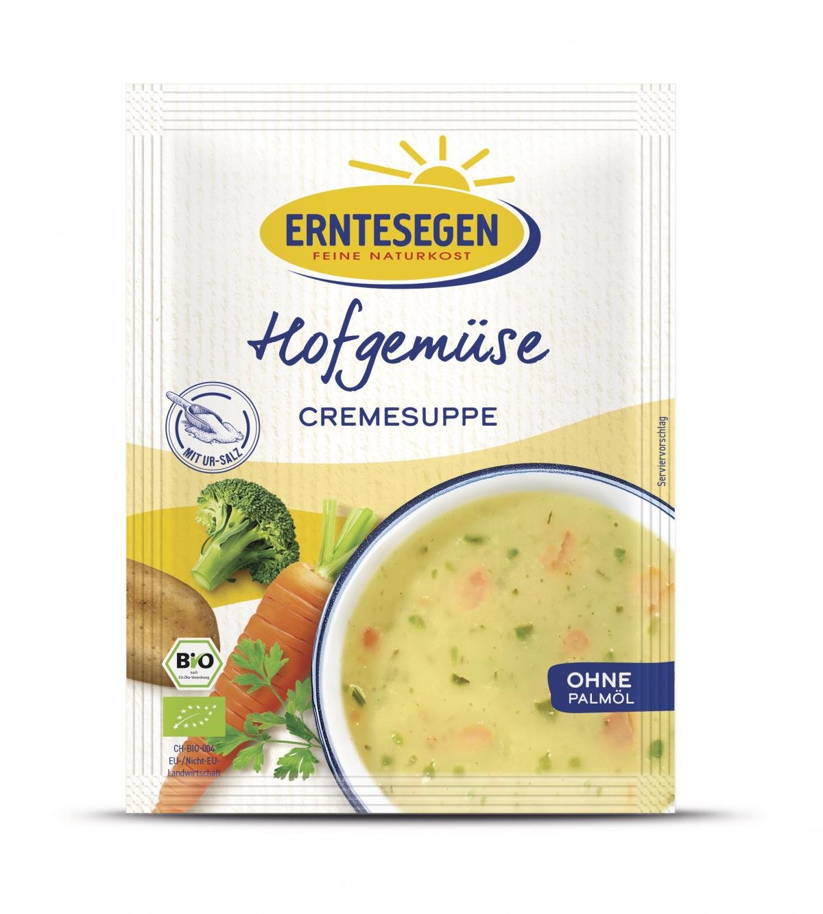 ... Hofgemüse Cremesuppe mit 17% Gemüse, mit Ur-Salz und ohne Palmöl.