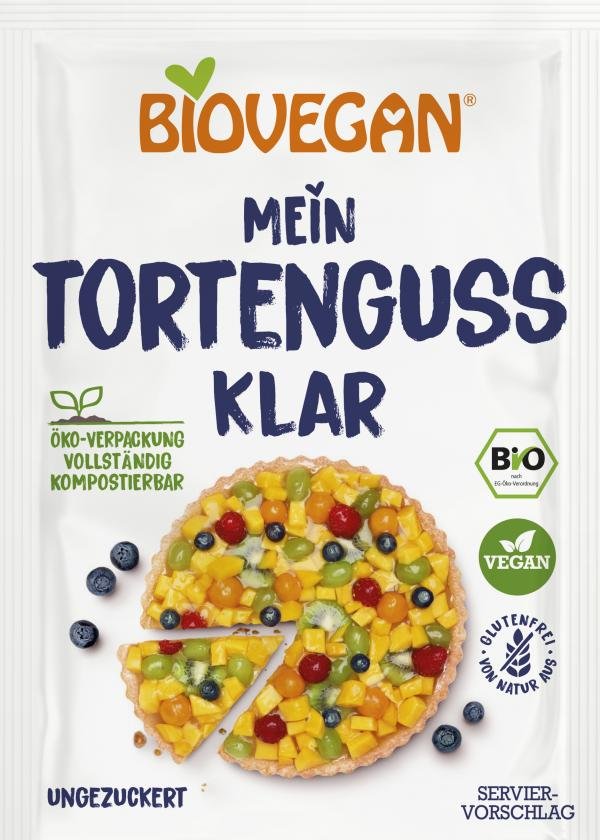 Die besondere Rezeptur des BIOVEGAN Tortenguss ohne Zuckerzusatz bringt mit seiner glänzenden und geschmeidigen Konsistenz die Frische des Obstbelages besonders gut zur Geltung.