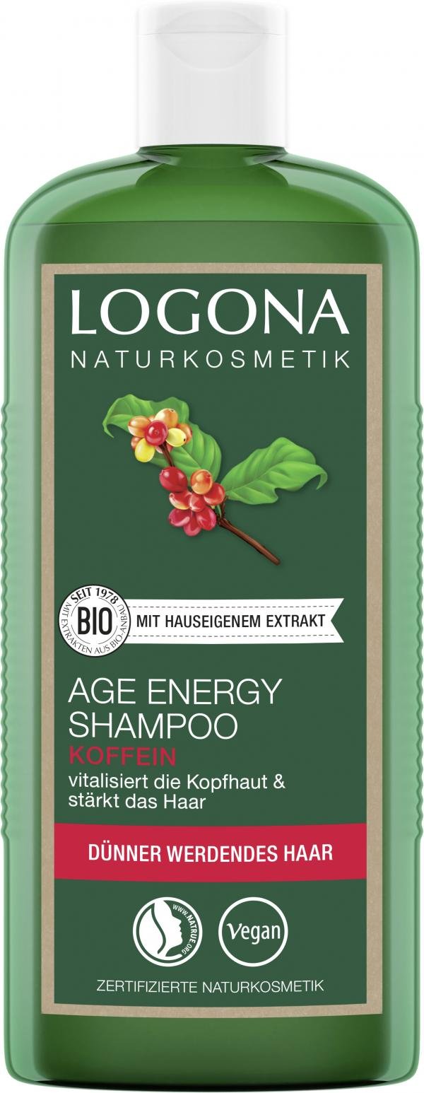 LOGONA Naturkosmetik Shampoos pflegen und stärken das Haar mit hauseigenen Extrakten, sind dabei sanft zur Kopfhaut und enthalten nur, was das Haar wirklich braucht. Das LOGONA AGE ENERGY SHAMPOO mit Koffein vitalisiert die Kopfhaut und stärkt das Haar. Koffein kann helfen Haarausfall vorzubeugen. Es ist bekannt dafür die Durchblutung der Kopfhaut anzuregen und so das Haarwachstum zu unterstützen. Die vegane Formel natürlichen Ursprungs basiert auf besonders milden Tensiden und ist für die tägliche Haarwäsche geeignet. Die pH-hautneutrale Formulierung unterstützt das natürliche Gleichgewicht der Kopfhaut.