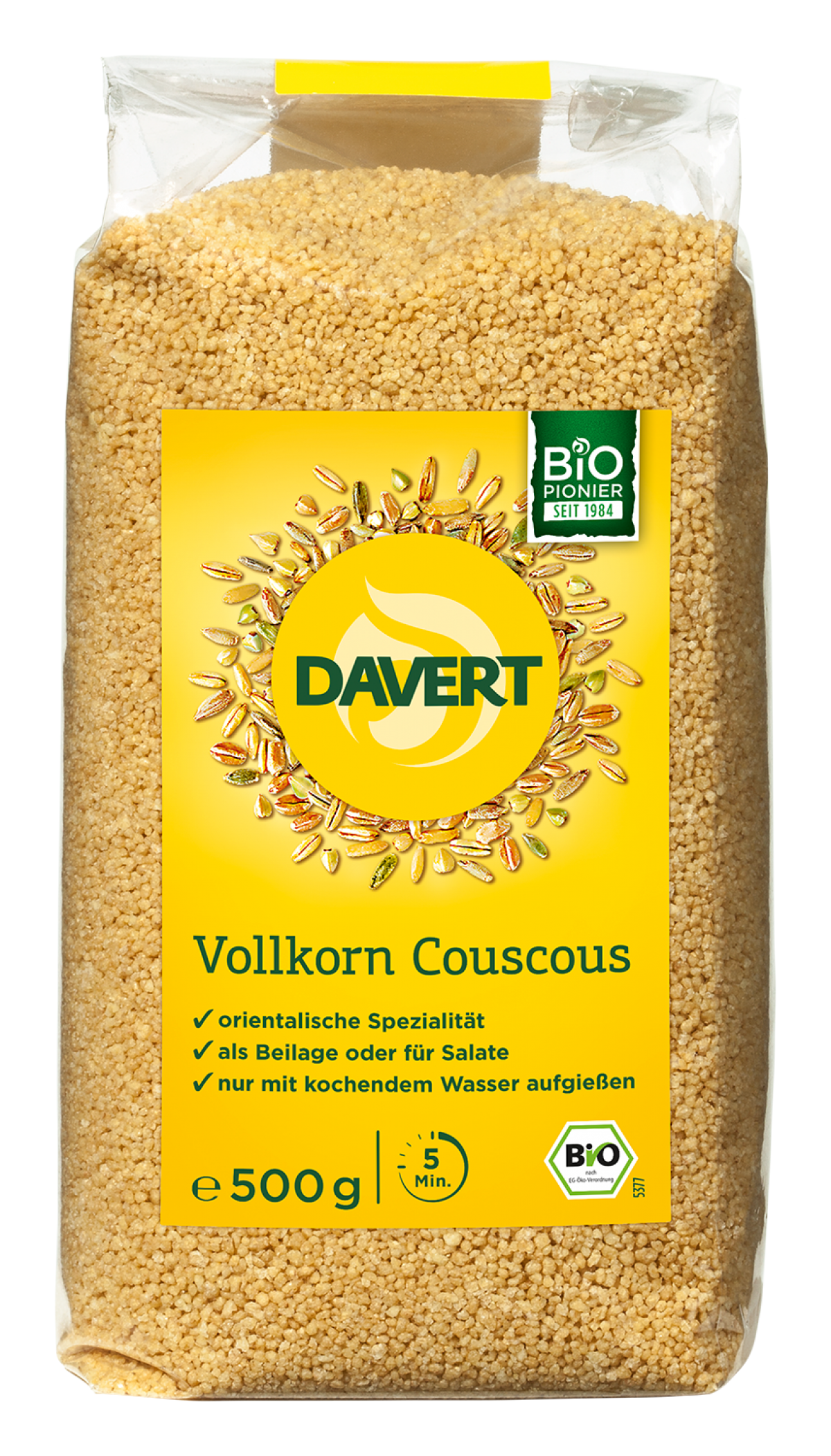 Couscous von Davert stellt mit seinem milden Geschmack eine ideale Alternative zu Kartoffeln, Reis oder Nudeln auf deinem Teller dar. Dank der lockeren Konsistenz eignet sich die orientalische Spezialität sehr gut als Beilage sowie für Salate und Aufläufe.