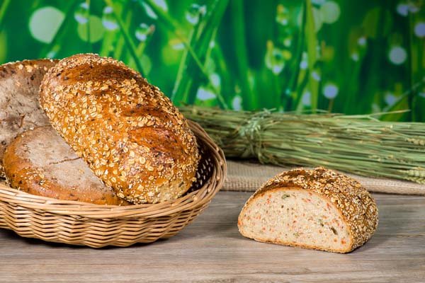 Wasser, Dinkelmehl*, Möhren*, Hafer*, Sesam*, Roggenflocken*, Sonnenblumenkerne*, Kürbiskerne*, Buchweizen*, Leinsaat*, Mohn*, Hefe*, Rapsöl*, Meersalz, Gerstenmalzmehl*, Zucker*, Acerolapulver*, Dinkelsauer* (Dinkelmehl*, Wasser, Dinkelsauer*).