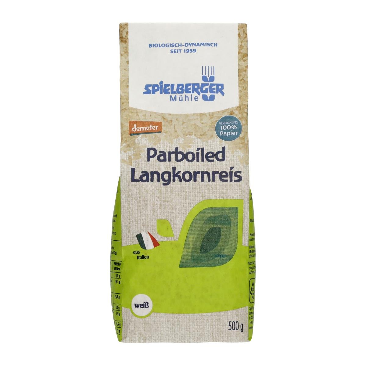 Der Parboiledreis in bester demeter-Qualität wird unter Druck gedämpft, wodurch die Vitamine und Mineralstoffe der Randschichten in das Korninnere gelangen. Erst danach wird das so genannte Silberhäutchen, welches das Reiskorn umschließt, schonend abpoliert. Damit ist Parboiledreis ernährungsphysiologisch gesehen fast so wertvoll wie Naturreis. Durch die Vorbehandlung lässt er sich jedoch im Gegensatz zu Naturreis schnell und problemlos kochen.