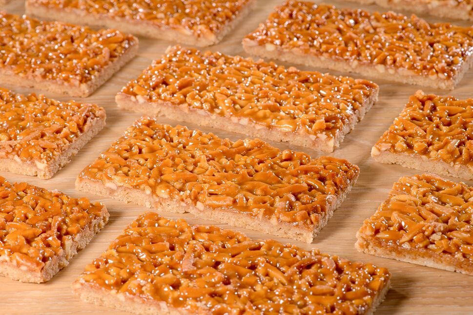 Butter, Zucker, Dinkelmehl, Mandeln, Dinkel, Sahne, Blütenhonig, Wasser, Weinsteinbackpulver (Monokaliumtartrat, Backtriebmittel: Natriumhydrogencarbonat, Maisstärke), Meersalz