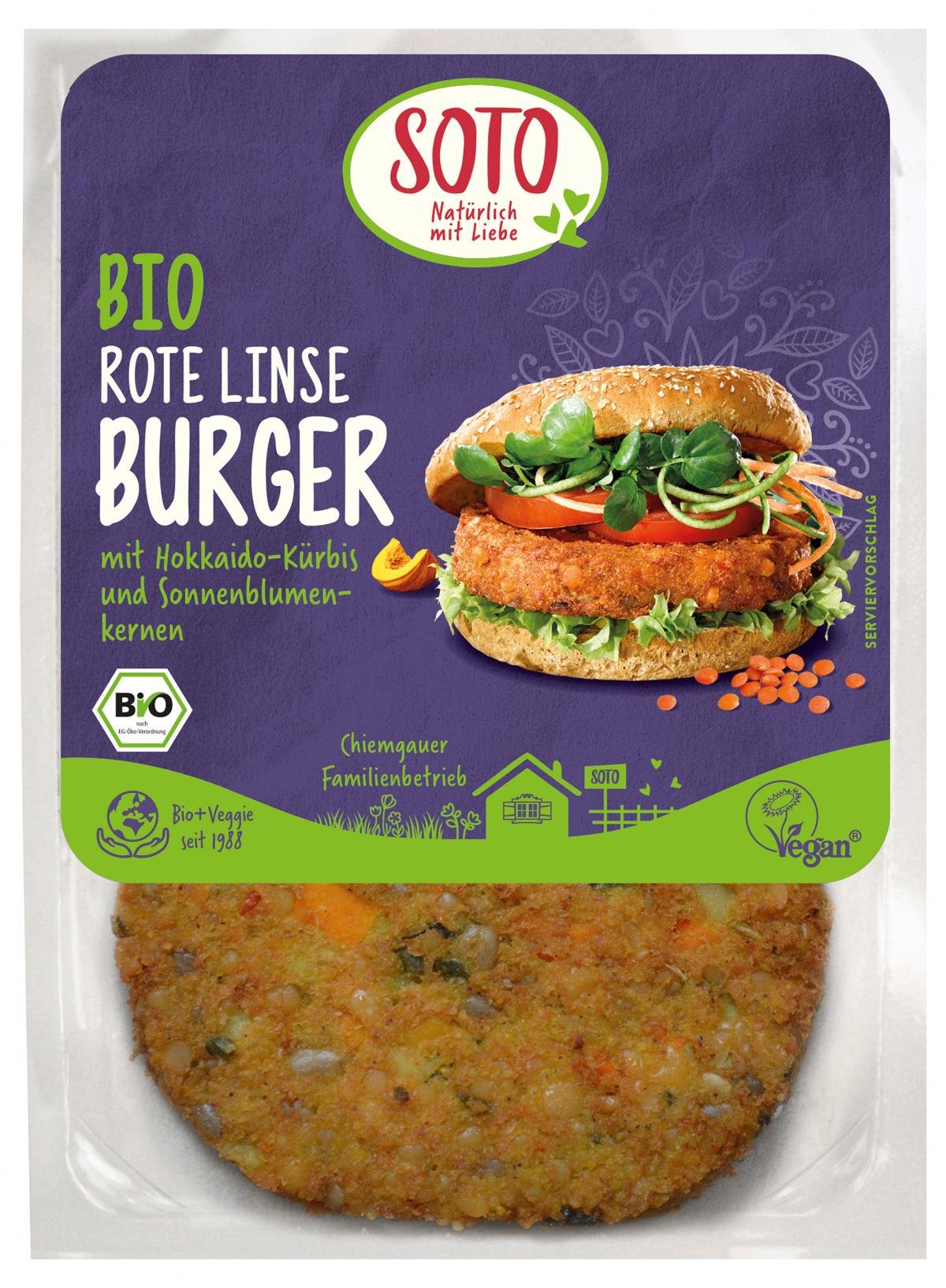 Mit dem hohen Anteil an Hülsenfrüchten liefert der Rote Linse Burger wichtige Proteine, was besonders für eine rein pflanzliche Ernährung von großer Bedeutung ist. Der mild-nussige Geschmack überzeugt auch in der Kategorie „Genuss pur“.