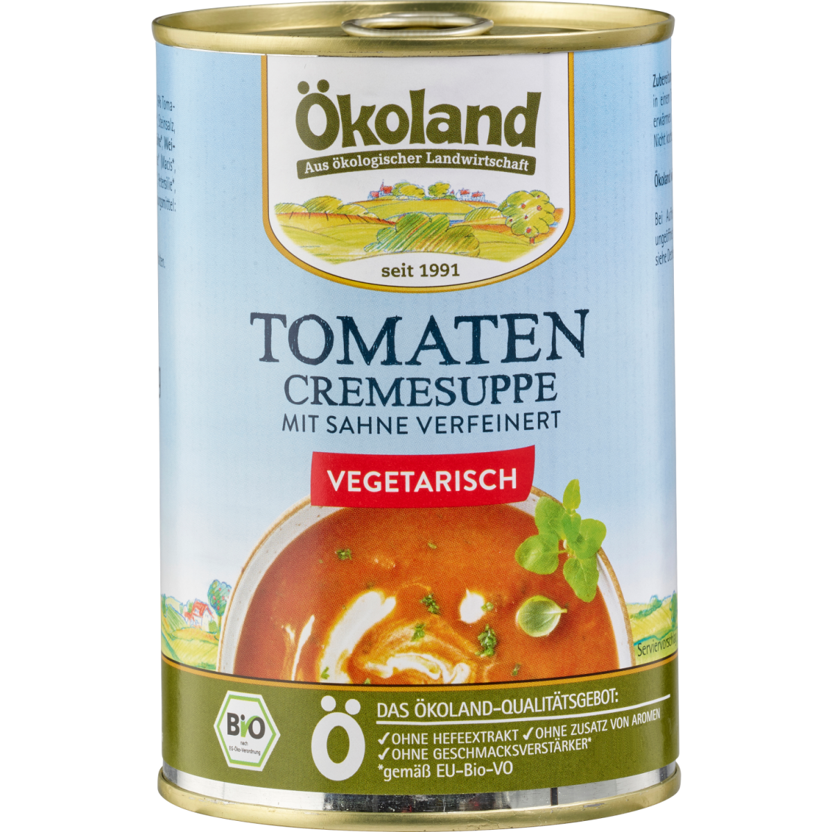 Die Azteken haben sie kultiviert und „tomatl“ genannt. Kolumbus hat sie nach Europa gebracht. Hier wurde aus der Tomate der geheimnisvolle Paradiesapfel – mit intensivem Duft und wunderbarem Aroma. Unsere Ökoland Tomaten Cremesuppe wird aus aromatischen Bio-Tomaten und mit einer feinen Kräutermischung sorgfältig zubereitet. Ein Schuss frischer Sahne vollendet diesen beliebten Klassiker.