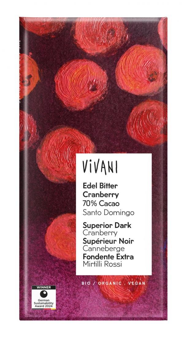 Allerfeinste Bitter Schokolade mit edlem Kakao aus der Dominikanischen Republik und getrocknete Cranberrystückchen für eine fruchtige Note machen diese Schokolade zu einem ganz besoderen Geschmackserlebnis.