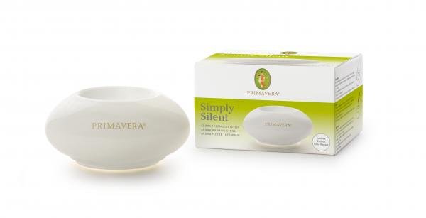 Lautlos. Einfach. Ohne Wasser. Das sind die Hauptmerkmale des Aroma Thermoduftstein Simply Silent von PRIMAVERA. Ein leichter Druck von oben auf das Gerät genügt, und der Thermoduftstein erwärmt rasch und geräuschlos die ätherischen Öle ohne Zugabe von Wasser auf die ideale und schonende Diffusionstemperatur von ca. 49 °C. Wenige Tropfen genügen, um Räume bis zu 20 m2 angenehm zu beduften. Während des Betriebes wird der Sockel sanft durch eine warmweiße LED beleuchtet. So fügt sich das Duftgerät charmant in Ihr Wohnambiente ein. Nach einer Stunde schaltet der Aroma Thermoduftstein Simply Silent die Erwärmung und Beleuchtung automatisch ab. Der aus hochwertiger glasierter Keramik gefertigte Thermoduftstein lässt sich mühelos reinigen und ist aufgrund seiner einfachen Handhabung auch sehr gut für Schlafzimmer und Büro geeignet.
