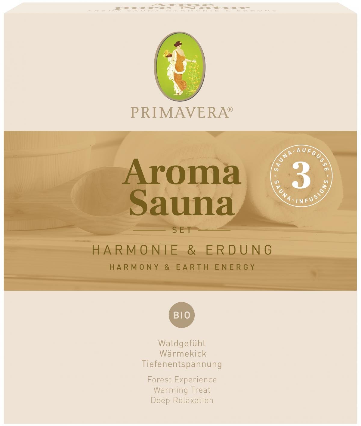 Set mit drei Aroma Sauna Aufgüssen zum Ausprobieren. Inhalt: Waldgefühl Aroma Sauna bio 10ml, Wärmekick Aroma Sauna bio 10ml, Tiefenentspannung Aroma Sauna bio 10ml