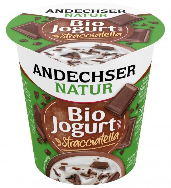 JOGURT mild*, Stracciatella-Zubereitung* [Rübenzucker*, Wasser, Schokosplits* (Kakaobutter*, Kakaomasse*, Rohrohrzucker*), native Maisstärke*, Verdickungsmittel: Johannisbrotkernmehl*; Zitronensaftkonzentrat*].
