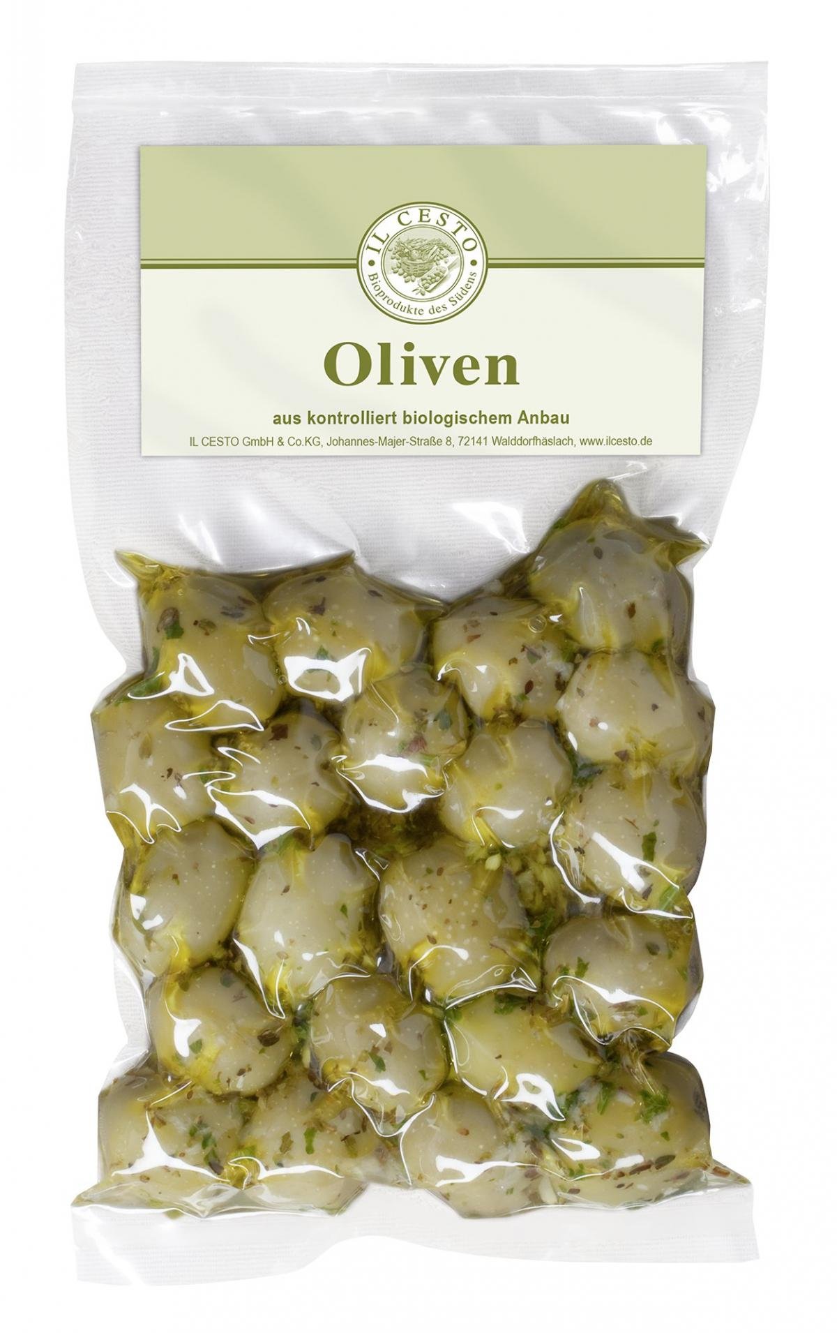 Griech. Oliven grün mariniert entsteint ohne Knoblauch