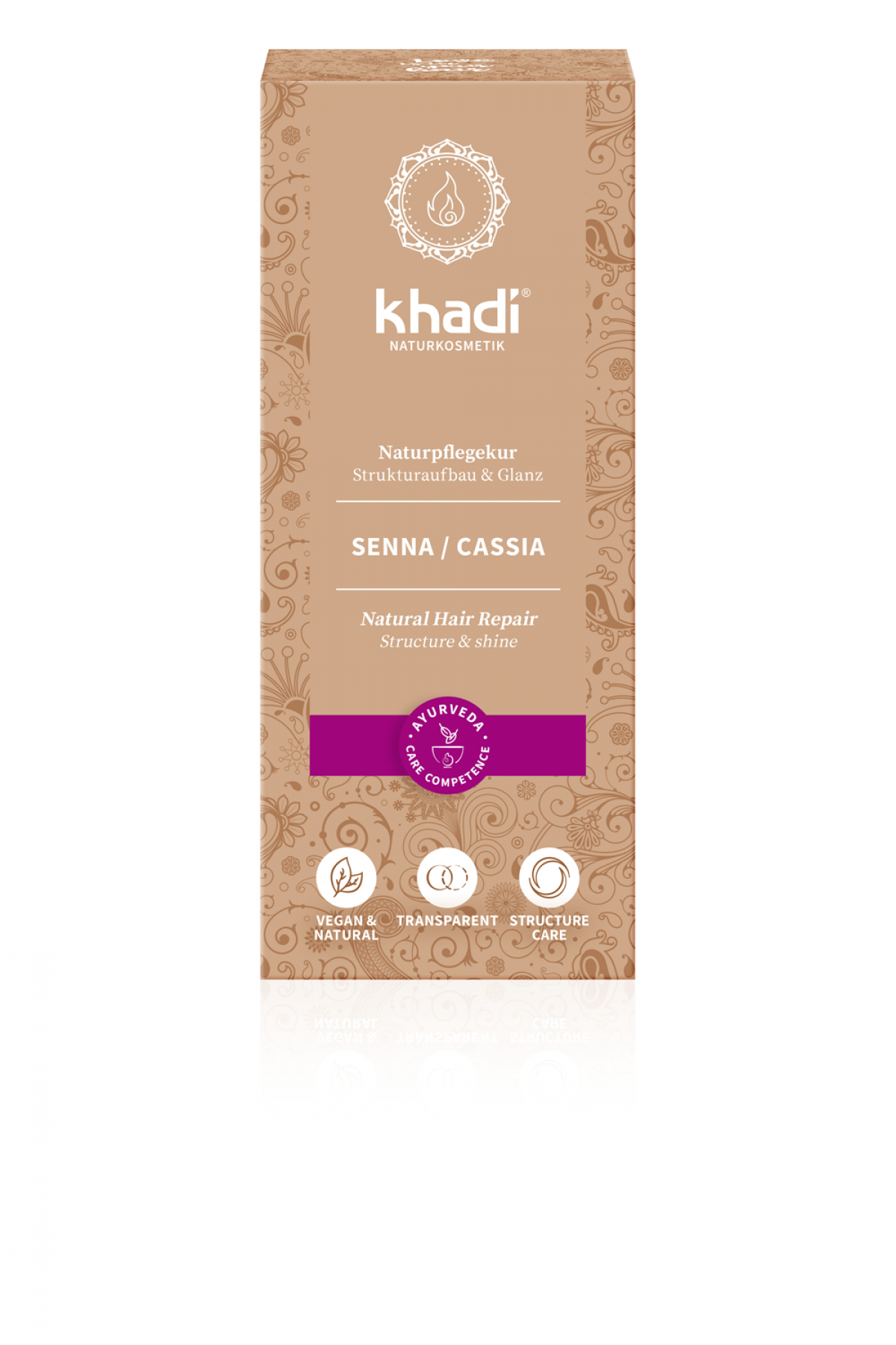 Spüre die reine Kraft der Natur in Deinen Haaren. khadi Senna/Cassia verleiht Deinem Haar Glanz, Volumen und Spannkraft und bringt Deine Naturhaarfarbe zur vollen Geltung. Als natürliche Haarkur stärkt und regeneriert Senna/Cassia Deine Haarstruktur. Deshalb wirkt es optimal, wenn Dein Haar trocken, stark strapaziert, blondiert oder gesträhnt ist - oder auch als Vorbehandlung, bevor Du mit khadi Pflanzenhaarfarben färbst. Es baut mit jeder Anwendung Deine Struktur auf und sorgt dafür, dass Dein Haar die Pflanzenhaarfarbe gleichmäßig aufnimmt.