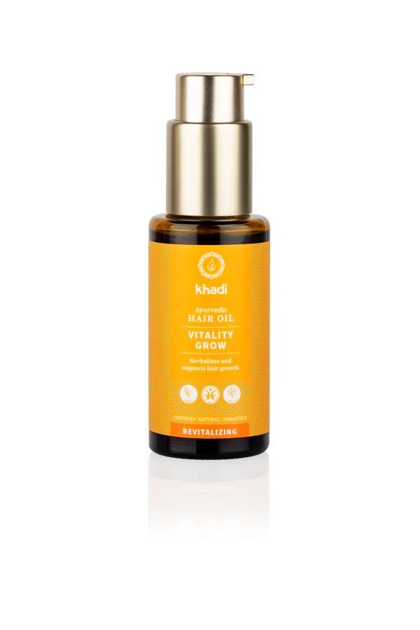khadi Vitality Grow Ayurvedisches Kopfhaut- und Haaröl - spürbar mehr Vitalität, belebte Kopfhaut und dichten Haarwuchs.