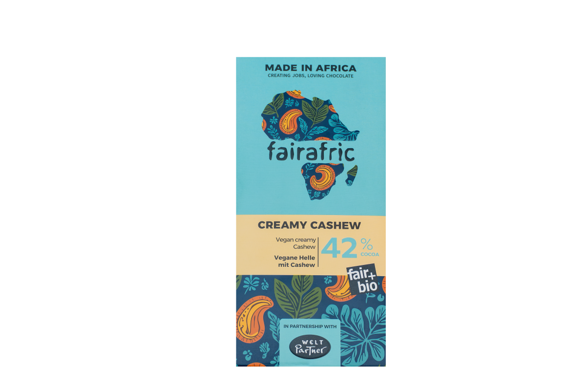 Cremig, zartschmelzend, pflanzenbasiert und besser als Milchschokolade: unsere 42% Vegane Helle mit Cashew Creme! Lass dir die feine schokoladige Versuchung auf Basis von Bio-Cashews auf der Zunge zergehen.