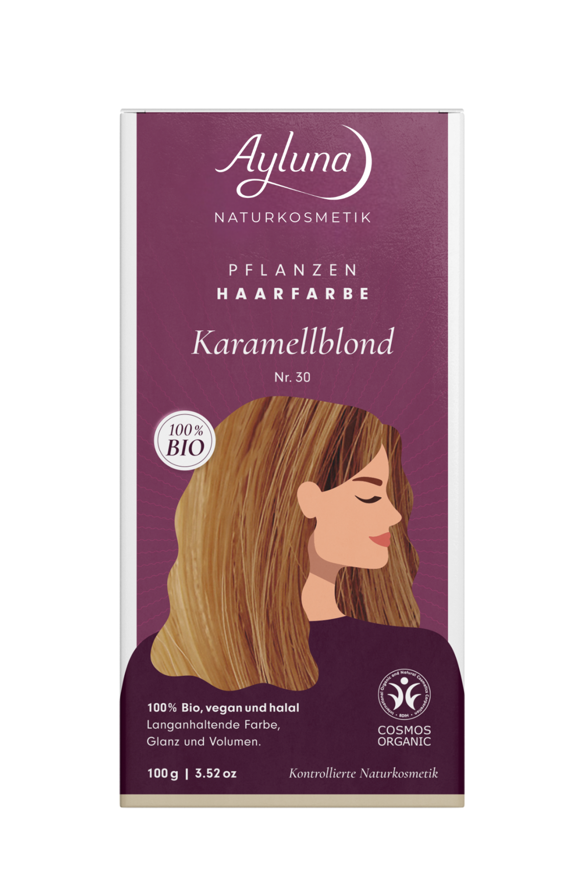 Besonders geeignet für hellblondes bis mittelblondes Haar. Ayluna Pflanzenhaarfarbe umschließt jedes einzelne Haar mit einer schimmernden Lasur ausgewählter Bio-Pflanzenauszüge. In Verbindung mit der natürlichen Ausgangshaarfarbe entstehen ausdrucksvolle, lebendige Farbtöne, Glanz und Volumen. Schonend und langanhaltend. Anders als chemische Haarfarben lässt Ayluna Pflanzenhaarfarbe die natürliche Haarstruktur unangetastet. Frei von Ammoniak, Peroxiden, Resorcin, PEGs, Duft- und Konservierungsstoffen. Nicht aufhellend. Für graues Haar geeignet. 100 % aus kontrolliert biologischem Anbau.