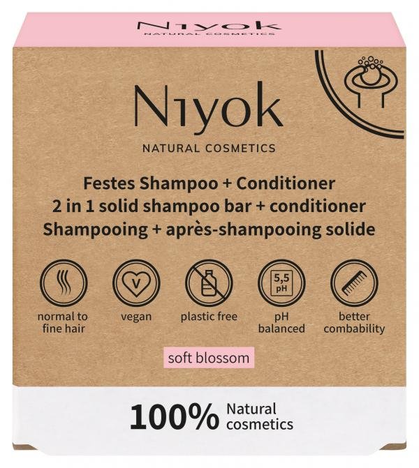 Ein festes Shampoo ohne Abstriche: Das feste 2 in 1 Shampoo von Niyok besitzt dank der speziellen Formulierung eine Conditioner-Funktion, die die Haare besonders weich und kämmbar machen. Es spendet reichlich Feuchtigkeit und schenkt dem Haar natürliches Volumen. Mit einem pH-Wert von 5,5 ist es hautneutral und damit besonders sanft zu deiner Kopfhaut.