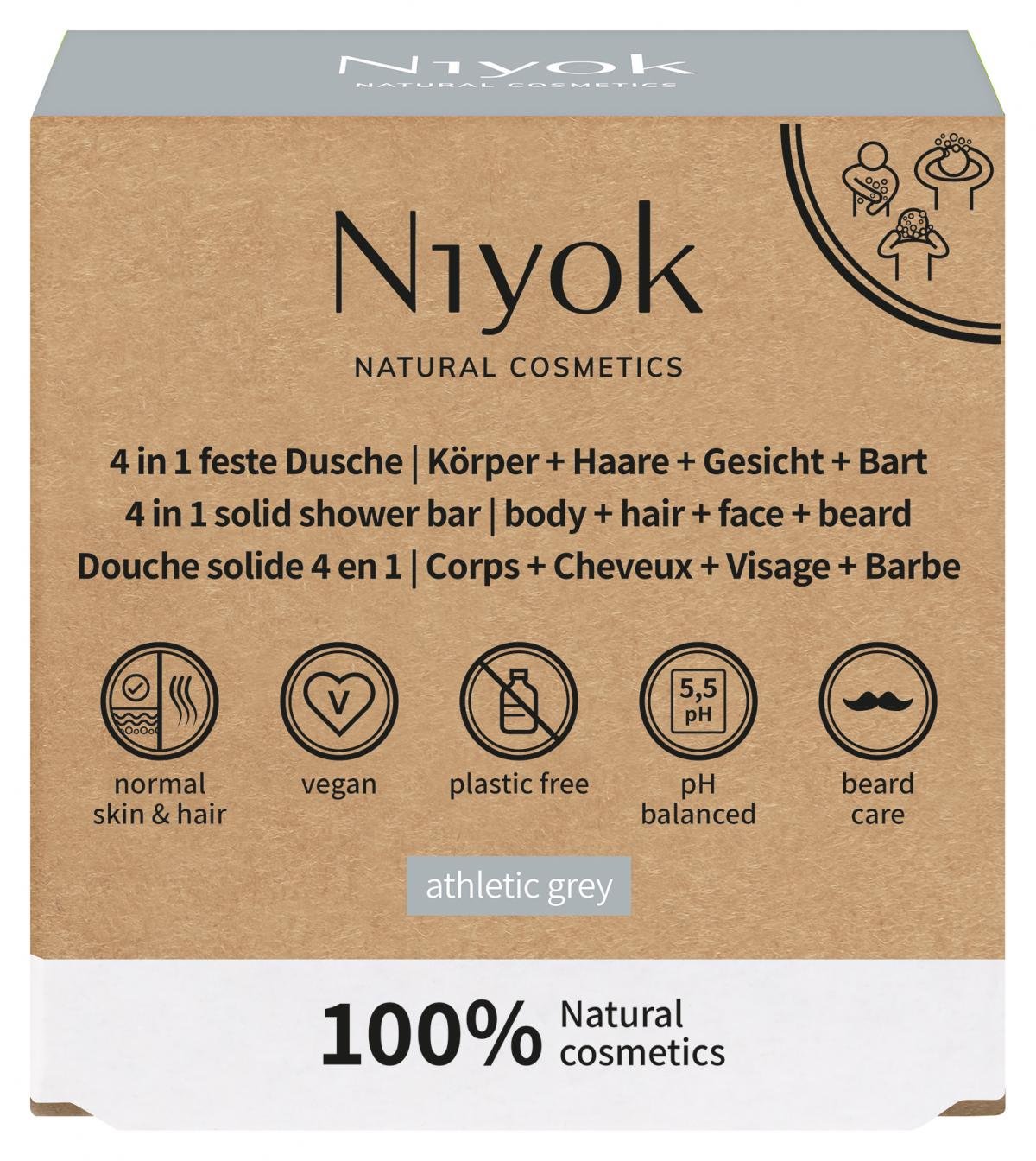 Unkomplizierte Körperpflege: Die feste 4 in 1 Dusche von Niyok ist für den ganzen Körper und auch den Bart geeignet und spendet aufgrund der Formulierung gleichzeitig genug Feuchtigkeit.