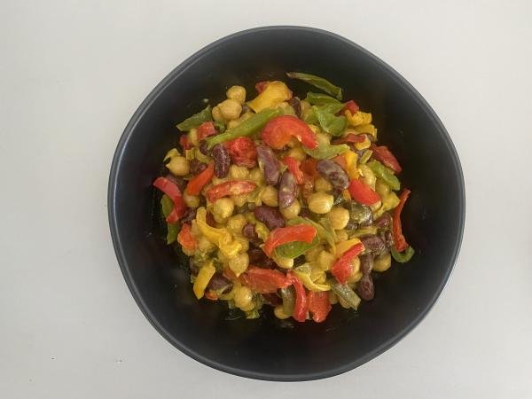Feinkostsalat mit Hülsenfrüchten in Curry-Gewürzdressing