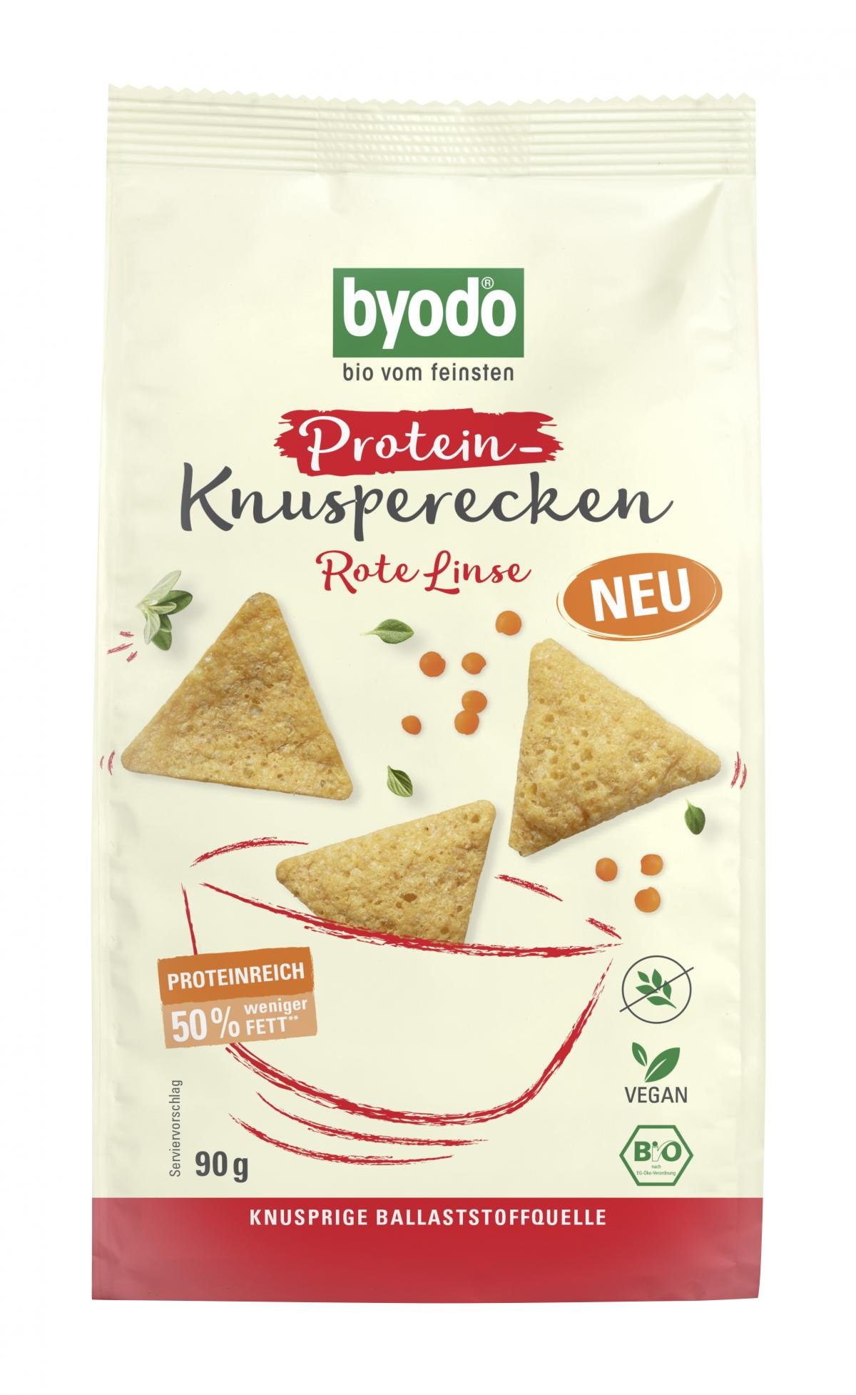 Veggie-Protein-Power trifft auf geballte Ladung extra Crunch! Bei unseren Protein-Knusperecken Rote Linse...